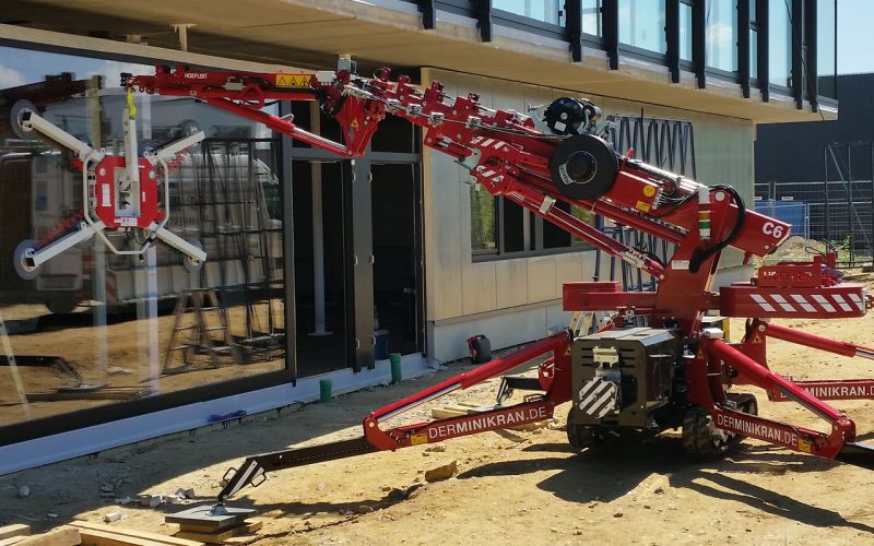Multifunktionalität, Robustheit und Effizienz – das kennzeichnet den Kompaktkran C6, denn es ist der einzige Minikran, der mehr als sein eigenes Gewicht heben kann und gleichzeitig durch eine normale Türe passt. Er ist beispielsweise außerordentlich gut zum Einbauen von Glas und zum genauen Positionieren von Stahlträgern geeignet.